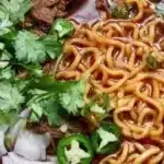 Birria Ramen can be served as a satisfying lunch or dinner. It’s great for casual get-togethers or cozy family dinners. Garnish with plenty of toppings for a colorful presentation and serve with crispy tortilla chips or croquetas on the side for added crunch. You can also customize the toppings based on personal preferences or seasonal ingredients.