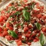 More basil leaves, chopped: Fresh basil is the perfect garnish for this dip, adding a burst of color and freshness. The basil’s aromatic flavor enhances the overall taste and adds a fragrant finish to each bite.
