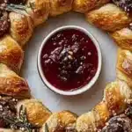 This Sausage Roll Wreath is best served warm and can be the star of your appetizer table. Pair it with cranberry chutney or sauce for a delightful touch of sweetness that balances the savory flavors. It’s perfect for game nights, holiday parties, or as a cozy snack during family movie time. Feel free to slice into it and let everyone enjoy tearing off their pieces!